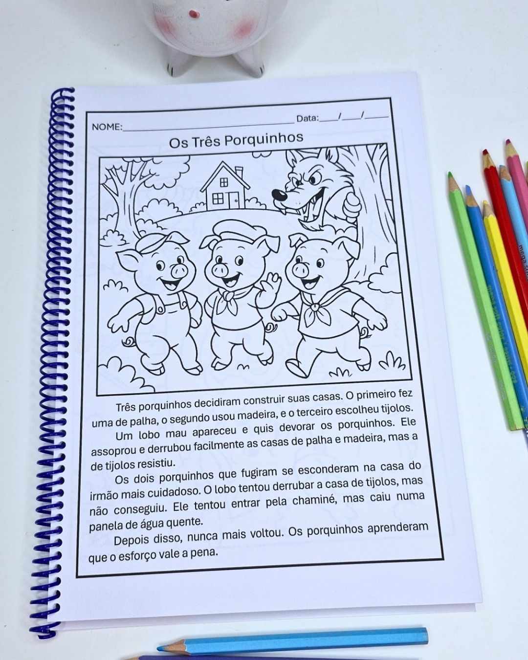 📖 O material inclui textos como Os Três Porquinhos, Chapeuzinho Vermelho, João e Maria, Cinderela, O Patinho Feio, A Cigarra e a Formiga, entre outros.
